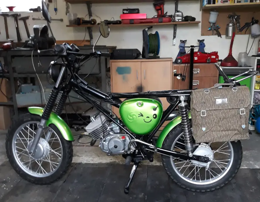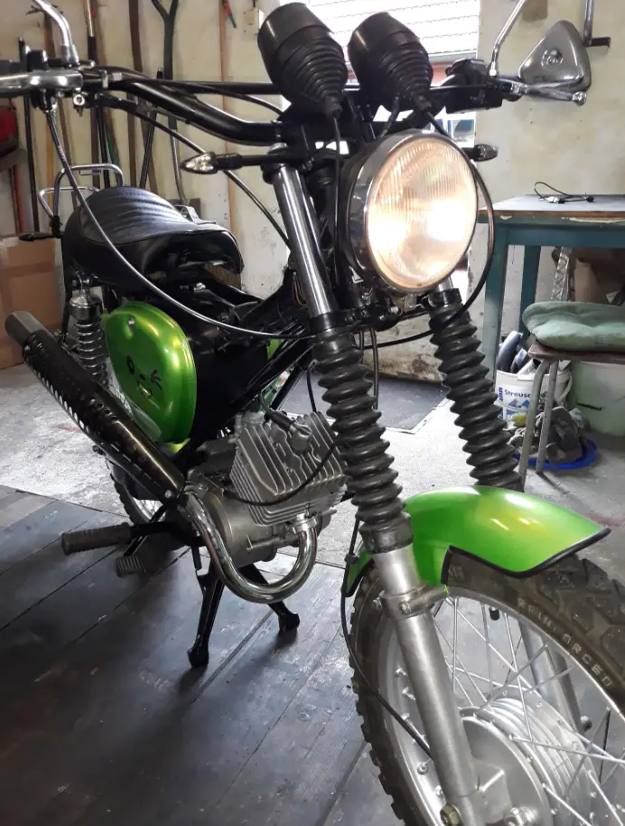 Neue Armatur mit Bremslichtschalter vorne,Frauen freundlicher Kickstarter,Kupplungsdeckel mit Drehzahlmesser,neues Cockpit und noch ein Motor Leerlaufkontakt.