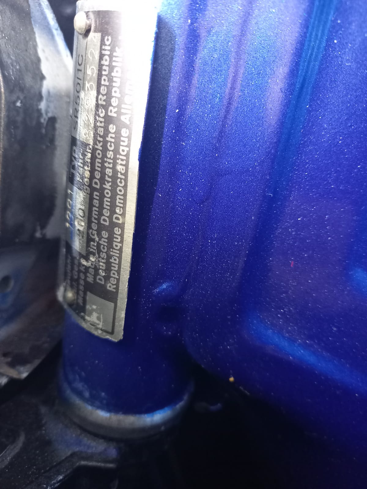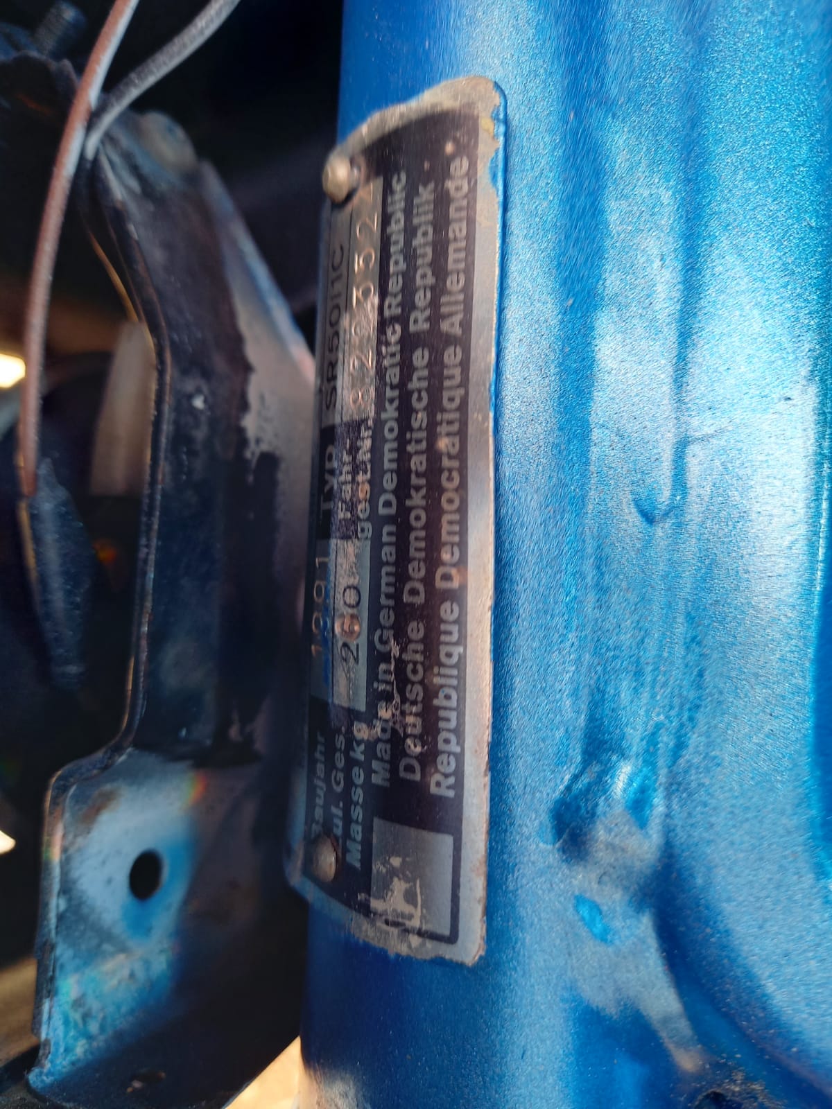 vielen Dank für die schnelle Antwort. Anbei 2 Bilder des Typenschildes. Die Kerbnägel scheinen noch original zu sein und der Orginallack ist unter dem Schild noch zu erkennen (die SR wurde leider eher schlecht blau lackiert).