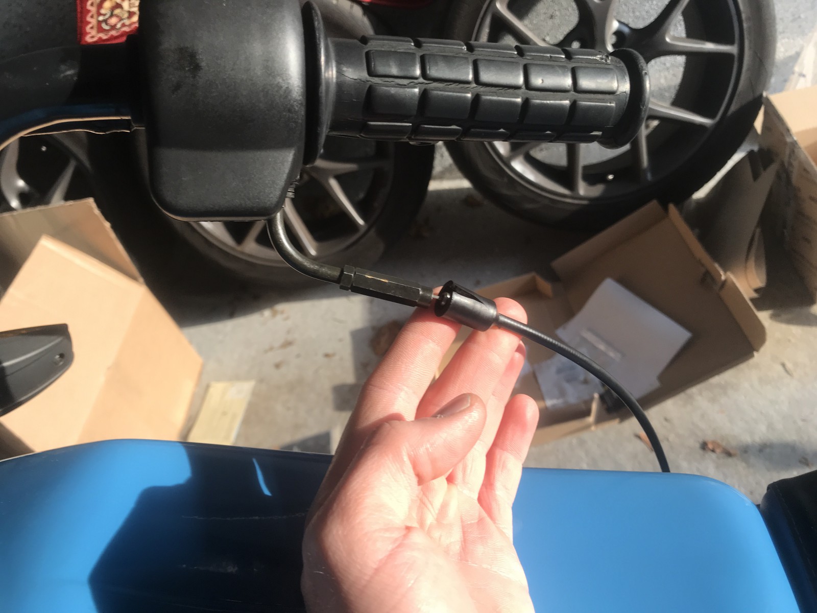 Hmm-sehr selten. Bj. 2001 hatten die wieder eine Magura-Armatur dran. Ich hatte mir Bowdenzug-Material gekauft und die Züge ( Choke und Gas ) selbst angefertigt. Auf der Vergaserseite muss man nur den Pin-Nippel einlöten. Bei der Armatur kann man einen Schraubnippel nehmen, den man auch verlöten könnte.