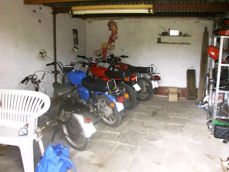 Das hier ist mein Lager. Ich hab einen eigenen Kellerraum, den ich vollstellen kann, wie ich will. Darin befinden sich derzeit 2 Schwalben und ein Duo (natürlich zerlegt) im Hintergrund wäre eigentlich noch ein kleines Fenster, welches jedoch durch die ganzen Reifen verdeckt ist. Links ist mein Regal mit den ganzen Kleinteilen und rechts stapeln sich die Bleche. Sieht ziemlich geräumig aus, ist aber eigentlich sehr klein. Ich hab auch ein paar große Teile gerade rausgeräumt, als ich das Foto gemacht hab. Normalerweise gibt es da keinen Durchgang:
