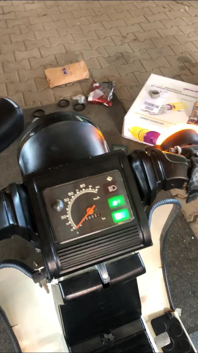 Da gestern Feiertag war, konnte ich am Roller was machen. Zündung auf Vape umgebaut und bei der Gelegenheit den Simmerring hinter der Zündung gleich neu. Dann noch viele Kleinteile neu wie Spiegelglas, Blinkerabdeckungen, Krümmerdichtung usw. Tacho kam auch ein neuer rein Original DDR...Zündung hab ich jetzt noch nicht eingestellt aber läuft immer auf den ersten Tritt schon mal an. Jetzt wo die Technik läuft kann der Roller komplett zerlegt werden und dann strahlen und pulvern. Wird derbe geil wenn der fertig ist.