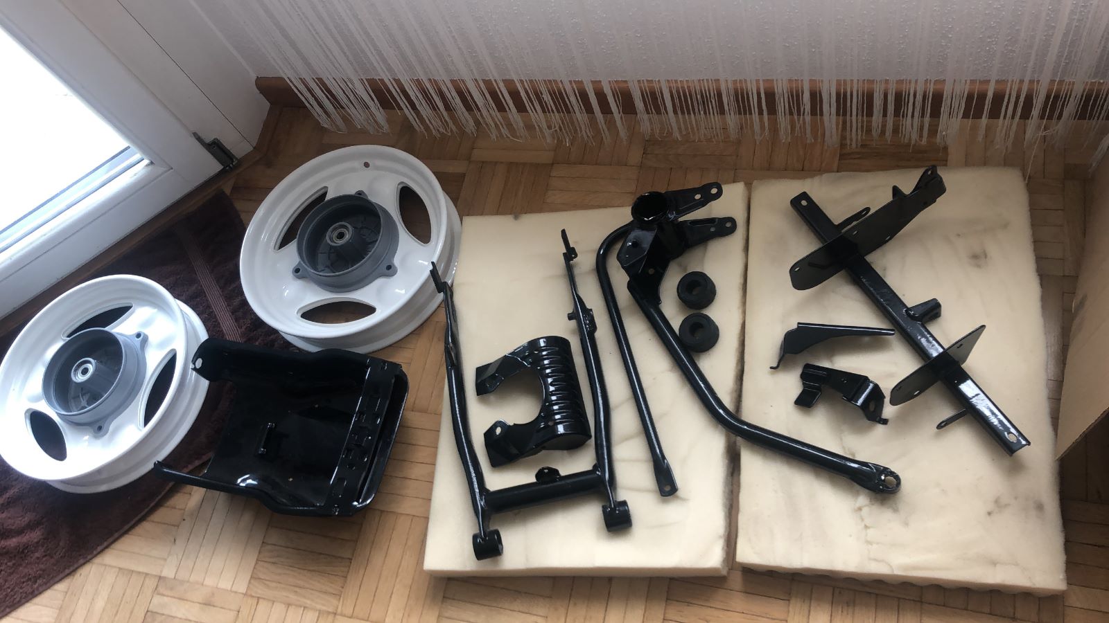 Montag schaff ich es endlich meine teile vom pulvern abzuholen und dann geht's richtig los mit dem Neubau vom Roller. Gestern aber die Räder schon mal fertig gemacht. Ist ganz schön gefährlich mit gepulverten Felgen und die 12 Zoll sind echt blöder zum aufziehen wie ne normale Felge. Aber sieht schon mal neu aus