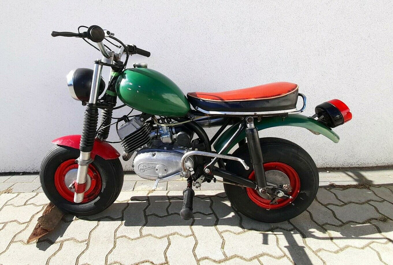 der Gedanke des Kindermopedzz kreist hier schon länger. Dann sah ich das Ding im ganz anderen Teil Deutschlands stehen. Paul (8) war total begeistert, beteiligte sich an den Transportkosten so kam es dann vor ein paar Wochen mit einer Spedition hier an.