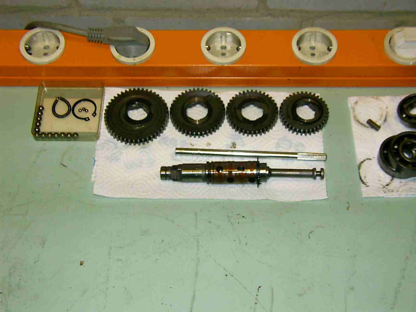erstmal danke für die Antworten. Ich muss leider eine Zwangspause bei den Arbeiten einlegen. Nachdem ich gestern das Getriebe zerlegt habe um das Kugellager von der Abtriebswelle zu lösen, habe ich leider nur drei von vier kleinen Kugeln unter der Schnurrfeder gefunden. Entweder habe ich eine verloren oder sie war nie drin, obwohl ich mir einen Montagedorn zur Demontage bestellt hatte. Ich habe heute einen Kugelsatz bestellt und warte nun mal wieder auf den Postboten.
