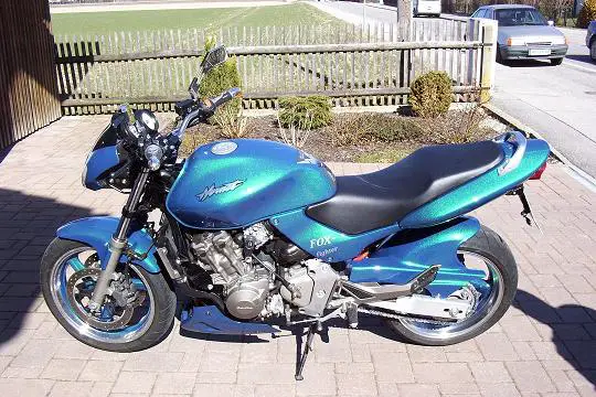 Ich finde das Kawa-grün nicht schlecht, aber die Farbe von der Hornet (siehe Bild) würde der Schwalbe bestimmt auch ganz gut stehen. Oder las sie komplett verchromen, das blendet dann sicher ordentlich .