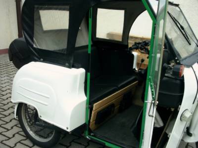 1.) Es zieht in dem Fahrzeug, wo bekommt man die schönen Planen-Ersatzteile für die Türen-Bereiche her?2.) Warum hat man bei der Konstruktion nicht den Motor abgedeckt, wie bei der Schwalbe? Es ist laut...