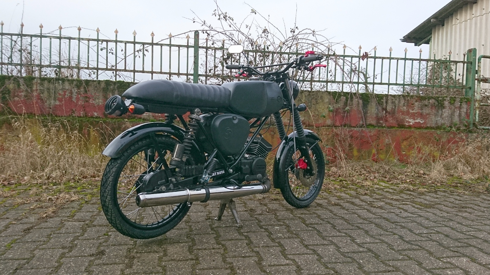 Zylinder ist ein Airsal T6, 24er Mikuni, RZT Daily Race SP, 5 Scheiben M541 Kupplung