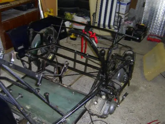 Ich habe vor weihnachten meinen rahmen vom sandstrahlen wieder bekommen und habe in dann auch gleich lackiert.Ist mir dieses mal sehr gut gelungen leider habe ich keine fotos vom lackieren gemacht.Die blech teile habe ich von meinen lackierer auch noch vor weihnachten bekommen. Also habe ich mich dann gleich an das zusammen bauen gemacht und die bilder sind das resultat von einen tag arbeit.