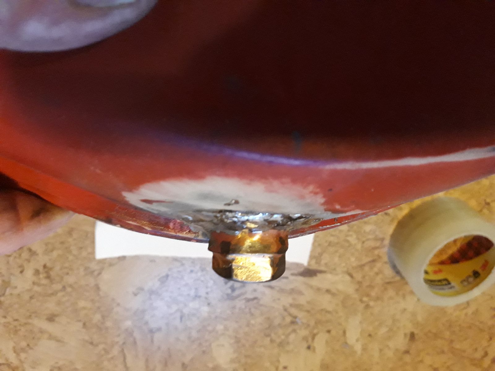 - den Magnet, auf den der Sensor reagiert, wurde in den originalen Tachantrieb mit Poliesterharz eingegossen. In die Mitte des Tachoantriebs habe ich ein Stahlblech und gegenüber eine Bleistück (aus dem Angelbedarf) mit dem selben Gewicht des Magneten eingegossen. Erstes um den Magneten nach hinten abzuschirmen, zweites, damit keine Unwucht enntsteht. Ob die beidenDinge Notwendig sind weiß ich nicht, geht wahrscheinlich auch ohne.