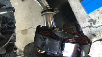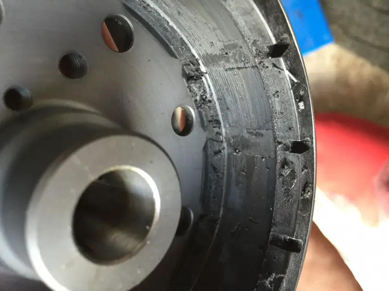 so sieht es da aus ist doch nicht normal ... Was ist da schief gelaufen , die Nase auf der pleul ist auch weg -.- kann ich so überhaupt weiter fahren ? Oder lieber pleul neu machen ? Was sagt ihr zum Polrad? Grundplatte habe ich sauber gemacht das geschmorte Zeug ab sorry handy hat jetzt Bilder doppelt hochgeladen