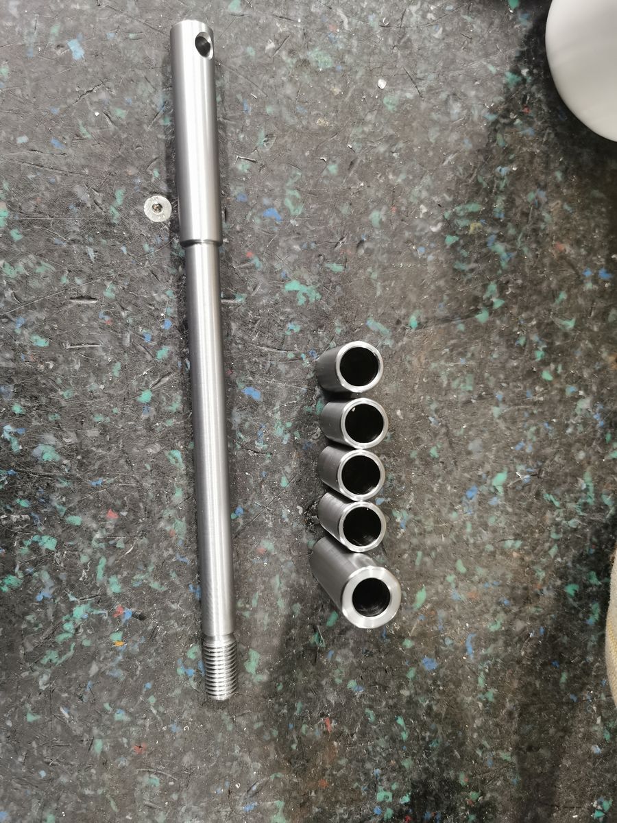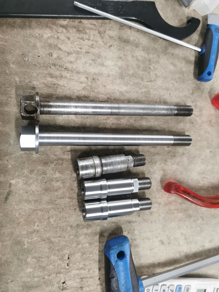 Achse vorne, Radlagerhülsen, Achse hinten + Verlängerung und Motorlagerbuchsen selbst gefertigt.