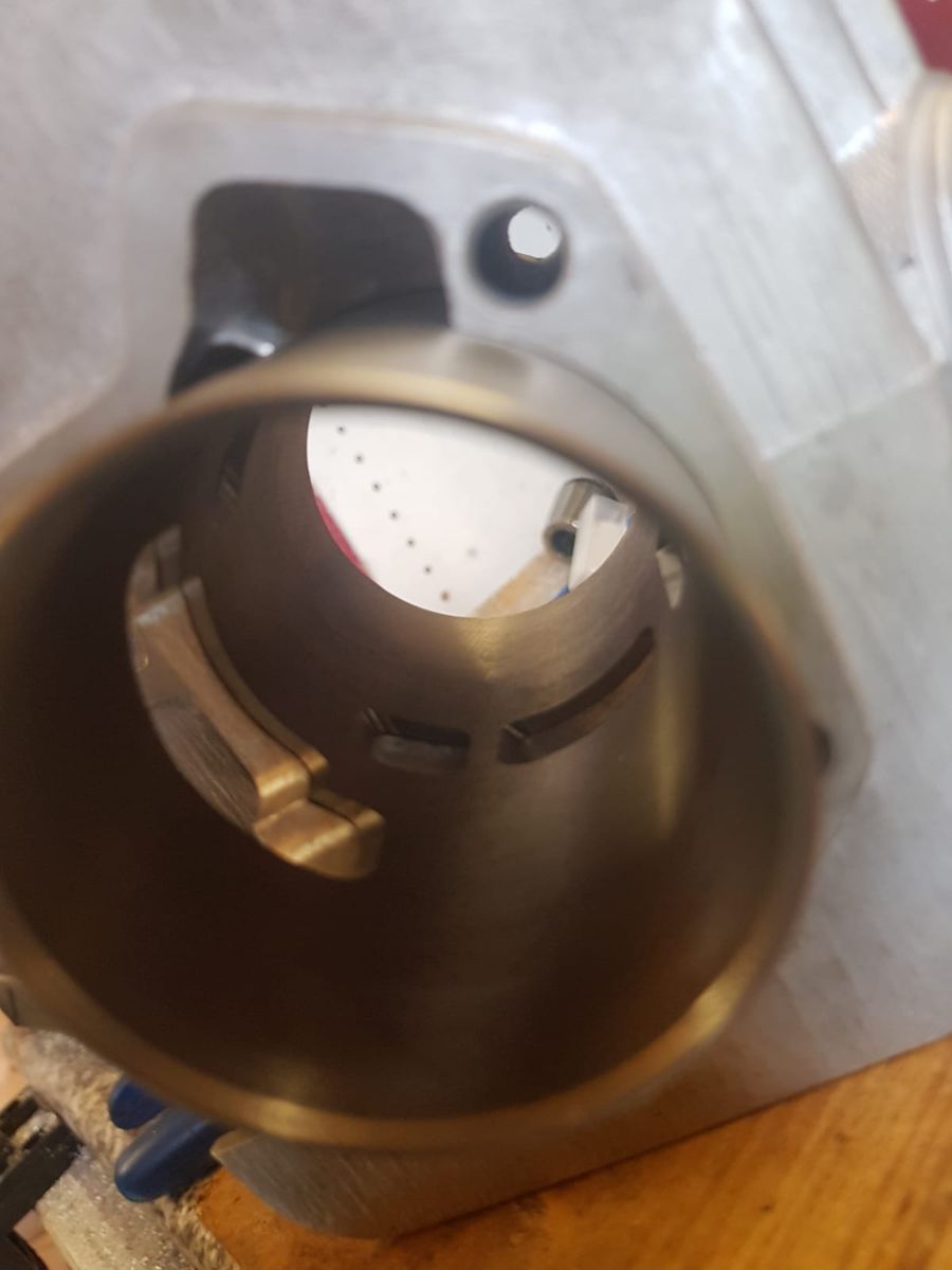 Nebenauslässe sind nicht drin, wegen Stehbolzenbohrung. Auslass ist 65%. Wie gesagt, eig noch zu klein.