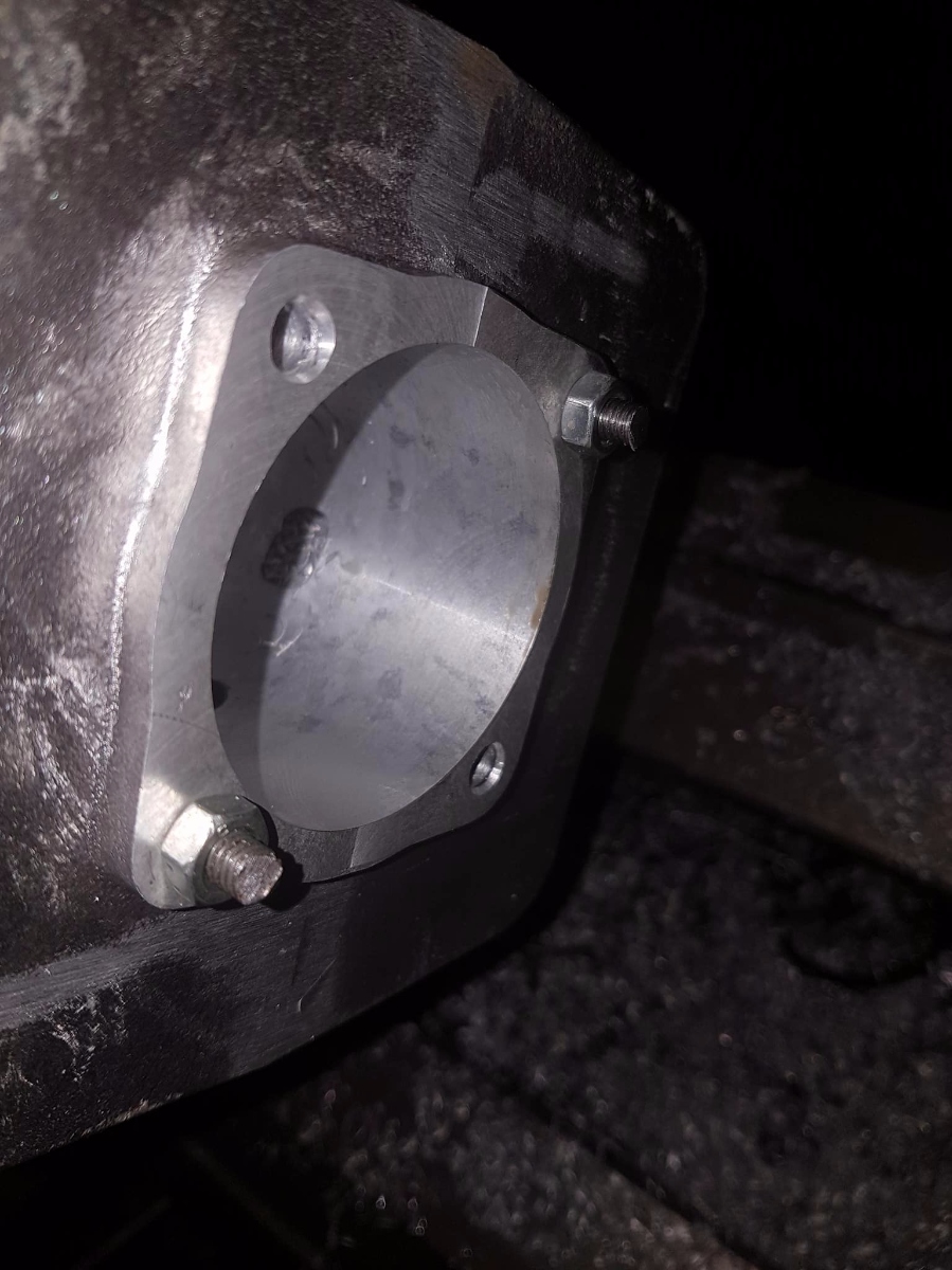 Wir fahren ja 52mm Hub mit 90er Pleuel. Durch die neuen Aluplatten wir die Oberfläche wie geleckt.Um den Auspuff haben wir uns auch gekümmert.