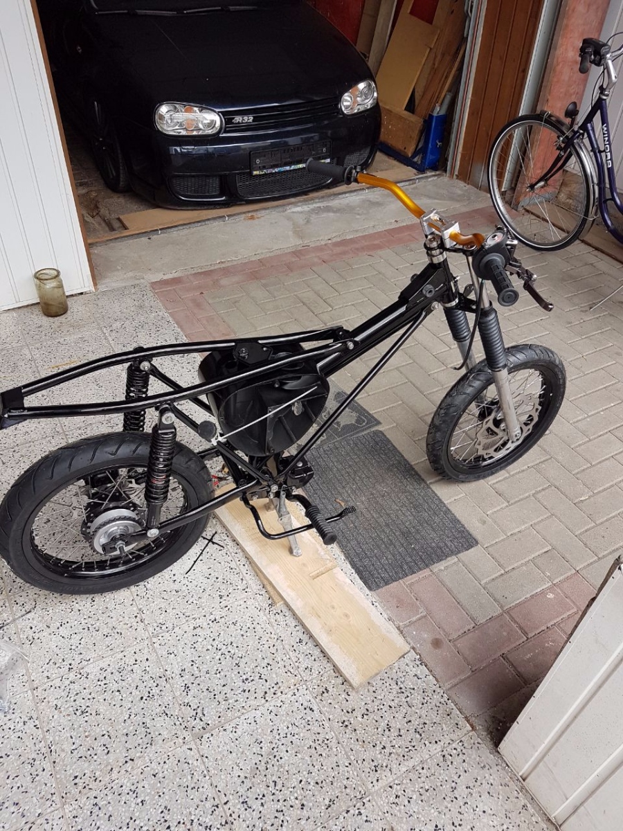 Das Moped ist nicht mir. Baut mein bester Kollege auf.