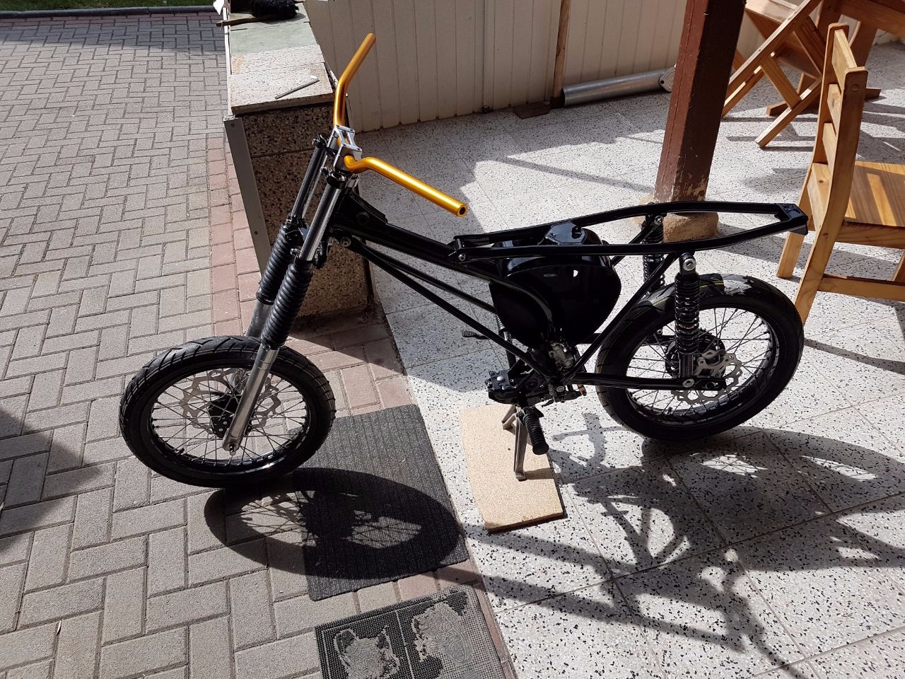 Der 85er ist fertig, schon ewig.Der 120ccm Zylinder hat nicht so geklappt, wie ich mir das vorgestellt habe, dafür ist der Simson KK einfach unpassend...