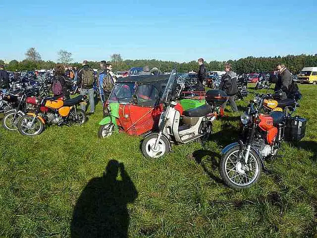 Also ich werde heute wohl mal vorbeischauen, allerdings mit 4 Rädern, aber auch stilsicher mit DDR-Mobil, naja zumindest für die DDR gedacht.