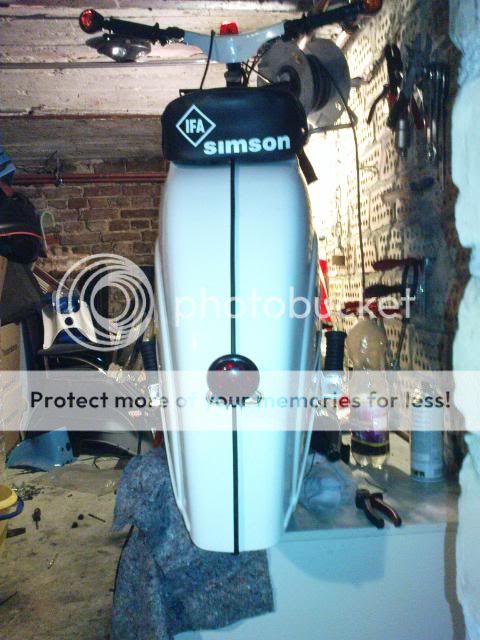 So ich konnte heute einiges Erledigen...Hupe geht jetzt, Ansaugschlauch montiert, Sitzbank fertig gemacht, Panzer angepasst, Rücklicht angebaut und hintere Fußrasten sind nun auch dranne.