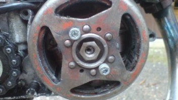 Also hat mein Vater mal den Seitendeckel runtergemacht und siehe da, das Polrad war nicht fest. Und es wurde schon dran rumgeschweißt etc.