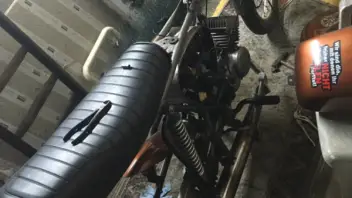 Einmal Lenkkopflager vorne neu, Motorlagerung gewechselt und Lenker erneuert. Trotzdem noch lange nicht fertig sowas verbasteltes hatte ich noch nicht gesehen bisher.