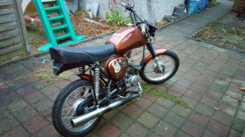 60er 2Kanal mit altertümlichen Kolbentuning, 28er Krümmer ungekürzt und den Auspuff mit "echten" Gegenkonus von Sachsenmoped, 6V Unterbrecher Zündung(nicht optimal), Luftfilterumbau vom Vorbesitzer (mehrere Löcher im Herzkasten und Feinstrumpf statt Patrone)Habe beim neuen Vergaser die unbekannte Hauptdüse gegen eine 75er getauscht und den Schwimmerstand zuvor kontrolliert(hat gepasst). Habe mein Moped dann getestet und versucht einzustellen, was aber nicht wirklich ging da nach kurzem Betrieb keine Gasannahme mehr möglich war also erstmal den Ansauggummi abgezogen danach ging er einzustellen.