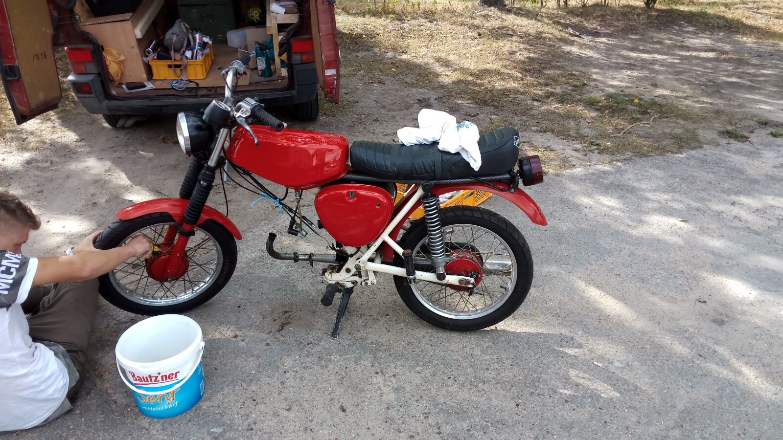 Mein Plan ist das Moped erstmal zum fahren zu überreden und den Jungs das basteln beizubringen. Ich persönlich fahre sonst eine CZ175 und TS150
