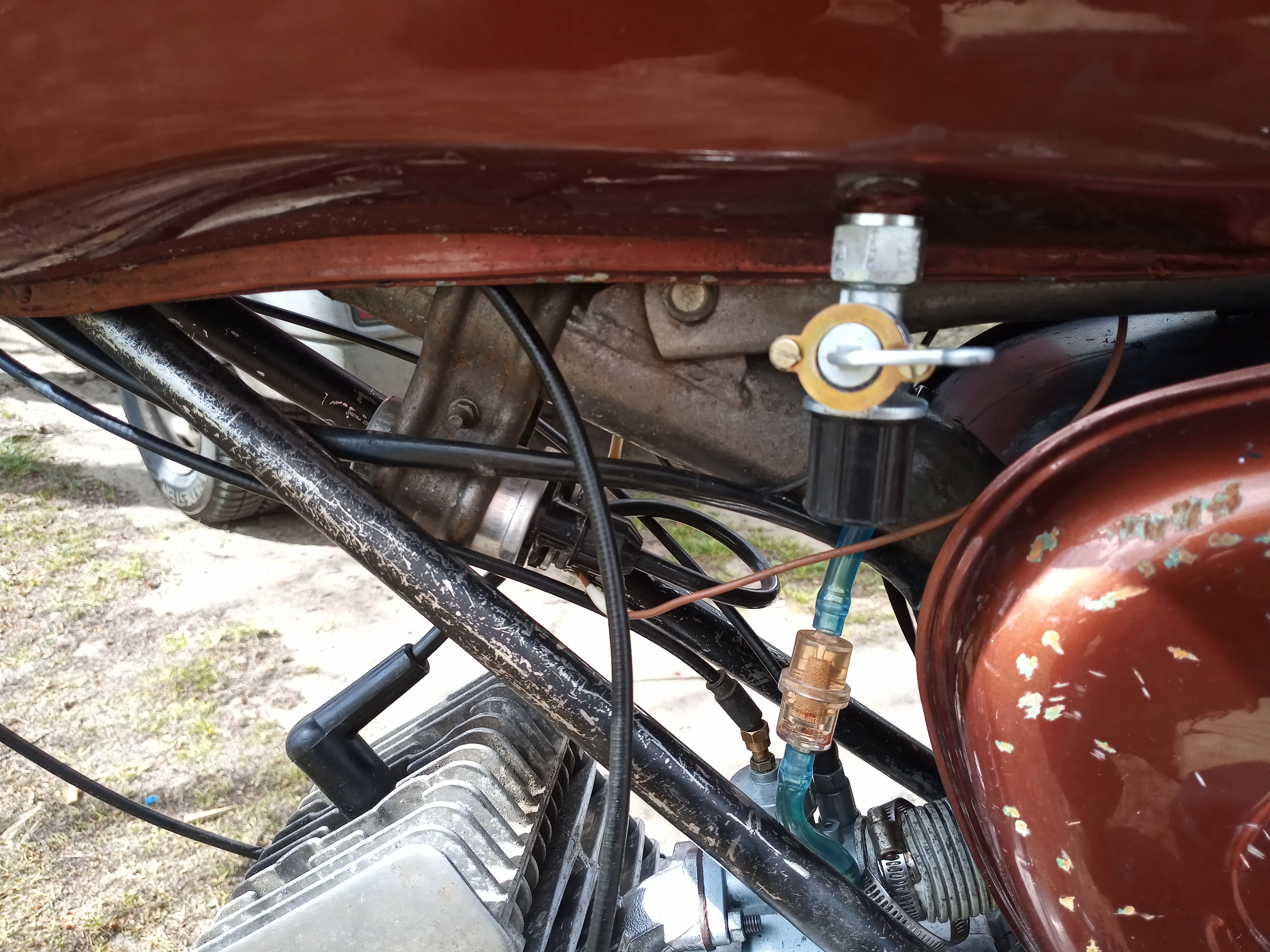 Allgemein gesagt ist eigentlich nur ein neues Loch im Obergurt gebohrt um daran den Tank zu befestigen. Meine Sitzbank würde ich nicht als Massstab nehmen da meine umgebaut ist und von hinten auf den Obergurt geschoben wird kann sein das bei einer originalen Sitzbank das Blech etwas angepasst werden muss, ich kann es derzeit leider nicht vergleichen da meine andere S50 noch auf Arbeit überwintert.
