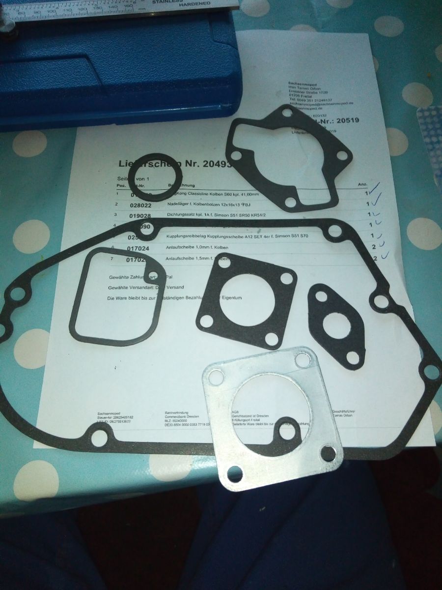 Dichtungen sind auch völlig in Ordnung nur weiss ich nicht wofür denn die Runde Dichtung dienen soll(Krümmer?).