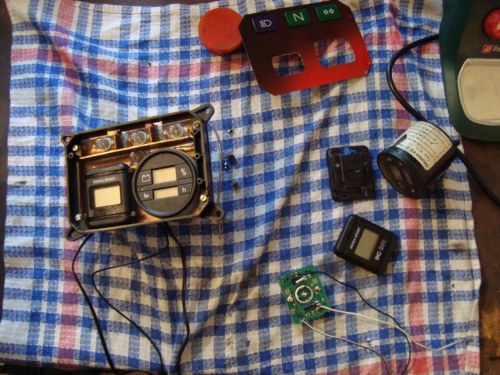 Mit den erhaltenen Teilen konnte ich das Kombiinstrument wieder in Stand setzen. Da der verbaute Fahrradcomputer einer "von der Stange" war, konnte ich mir den günstig bei Ebay Kleinanzeigen besorgen.