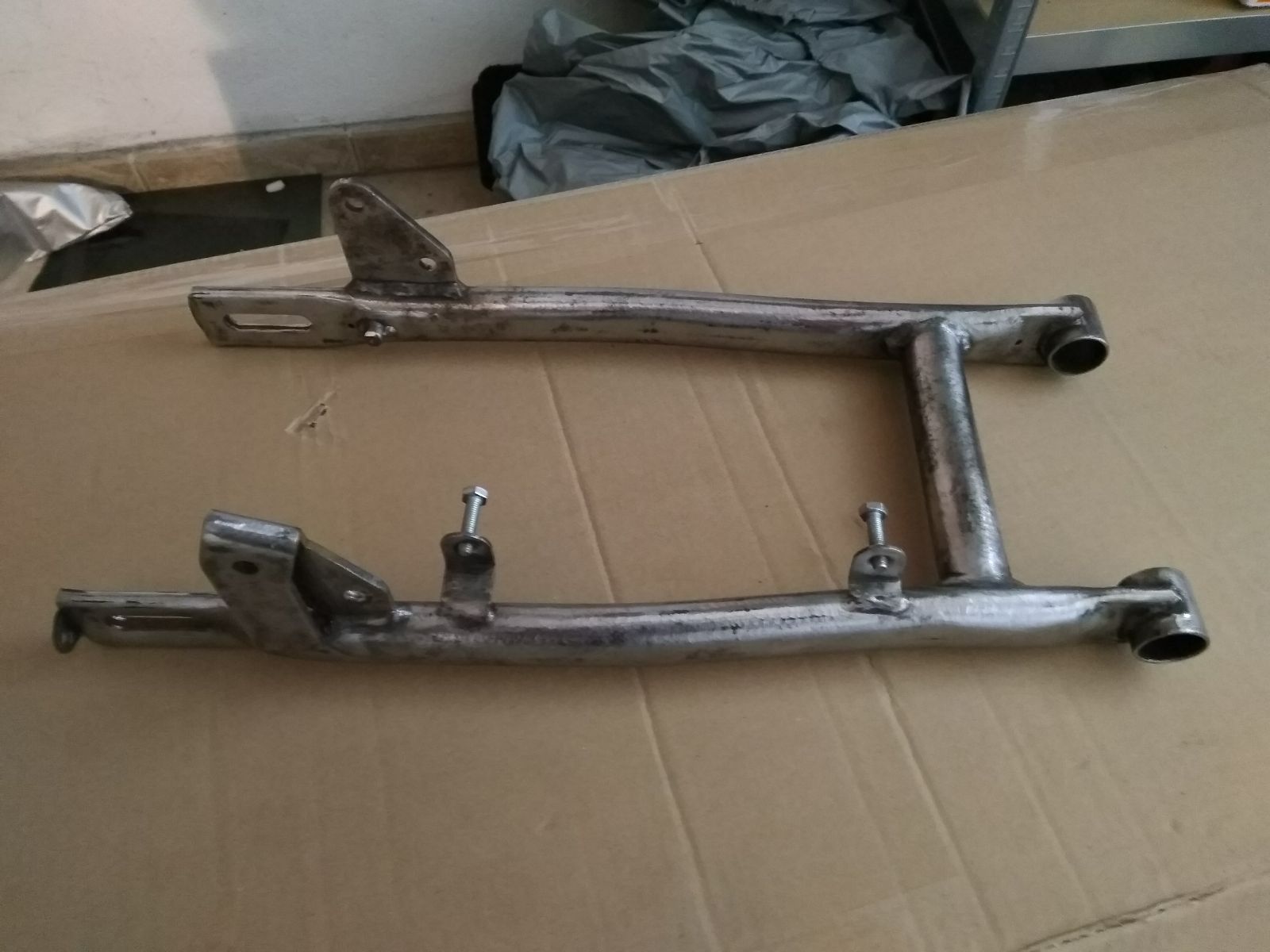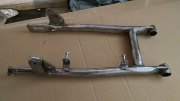 Naja, ganz so leicht ist das nicht... schon alleine wegen der doppelten Federbeinaufnahme auf der rechten Seite. Die Schwinge war schon gut verrostet. Letztlich bin ich mit Flex und ner Schruppscheibe dem Rost zu Leibe gerückt. Das war nicht nur Oberflächenrost... teilweise waren da schon richtige Rostplatten. Hab fast 2 Stunden gebraucht. Den Rest sollte der Sandstrahler runter bekommen.