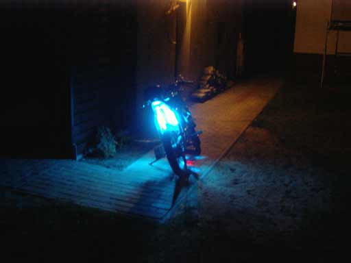 Das ist nicht mein Moped, das hab ich nur im Internet gefunden. Das gehört bestimmt irgend so einem Discofreak, der ohne bunte Lämpchen nicht auskommt!