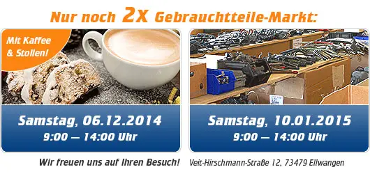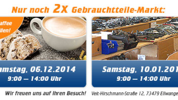 Unser Gebrauchtteilemarkt findet nur noch 2 x statt.1. Termin 6.12.14 von 9-14 Uhr - mit Stollen + Kaffee/Glühwein