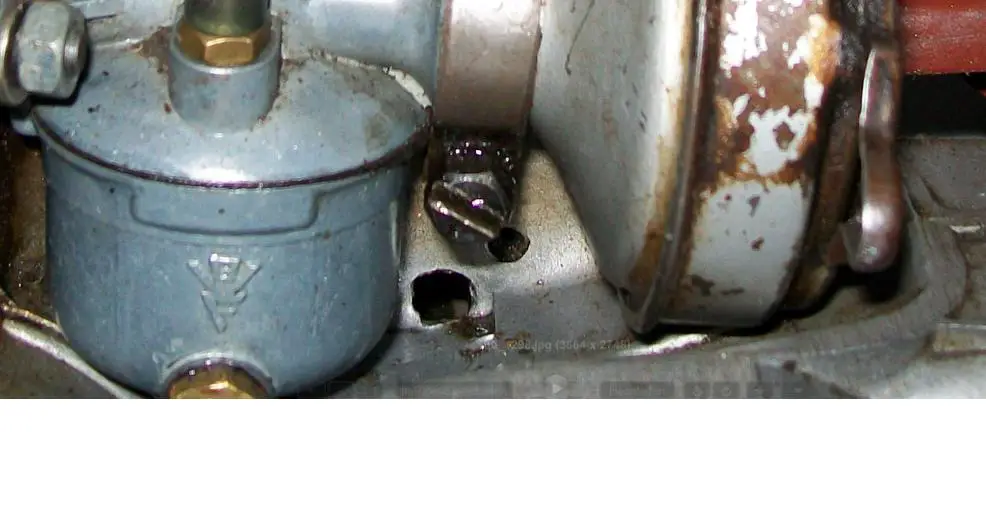 in der Vertiefung in welcher das Schwimmergehäuse sitzt.Frage: ist das normal? vermutlich nicht da ja die Suppe welche aus dem vergaser überläuft ins Getriebeöl gelangt......