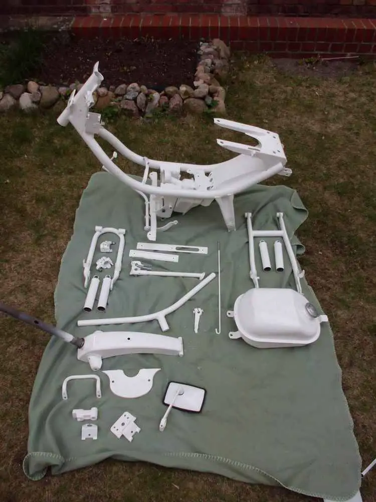 Ja gummi s hab ich alle schon in weiß da ,Keder, Sitzbank , Gepäckträger und Trittbretter auch in weiß... warte jetz nur noch auf das Blechkleid vom Lacker.