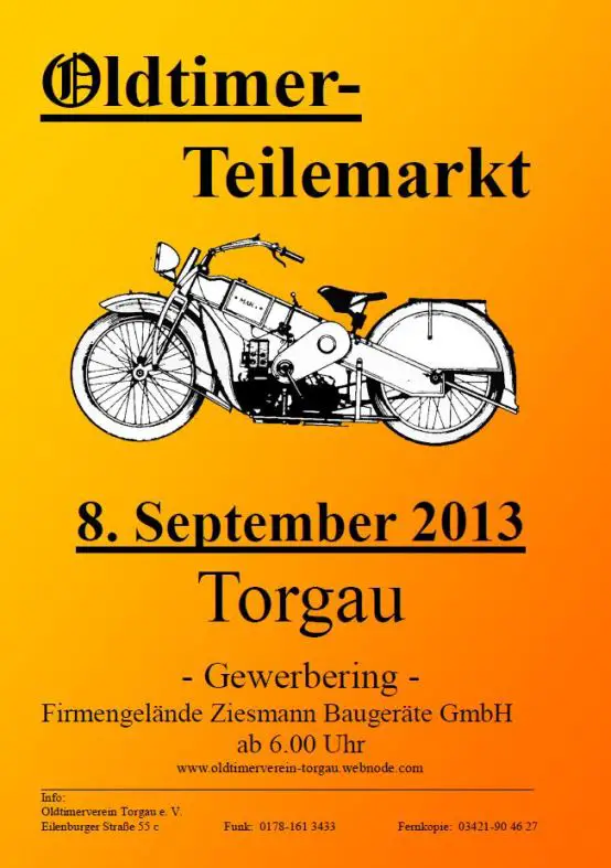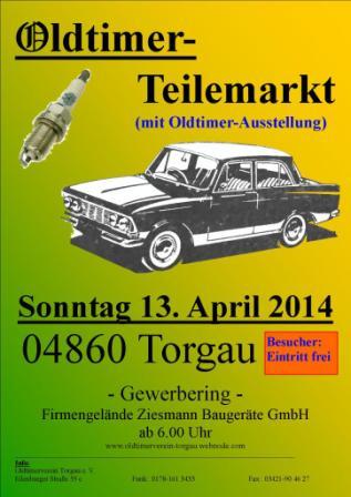 noch ein paar neuere Infos zum Sonntag, den 13.April 2014, in Torgau. Neben dem Oldtimer-Teilemarkt gibt es noch einiges anderes diesen Tag in Torgau: