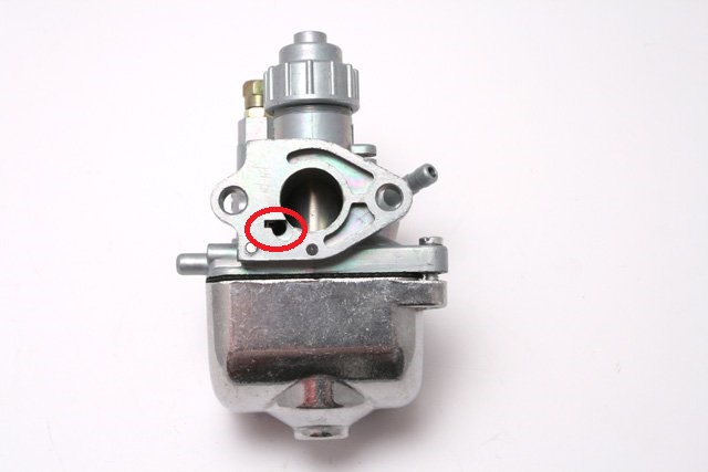 Habe die Vermutung das dort bei mir was nicht stimmt, da dort bei mir die Regulierschraube inkl. Feder zu sehen ist. Vielleicht wurde die Schraube mal zu weit reingedreht und der Gaser an der Stelle beschädigt. -