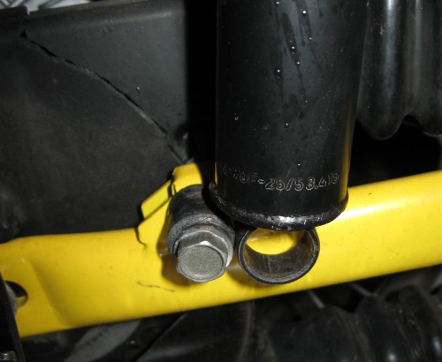 Fehlt hier etwas? Z.B. eine Sicherungsscheibe, die verhindert, dass der Stoßdämpfer sich lösen kann?