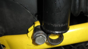 Als ich die Simson per Spedition bekommen habe, war der eine Stoßdämpfer unten aus seinem Lager gerutscht und hing nur noch an der oberen Befestigung.