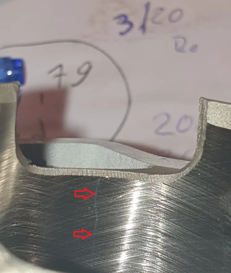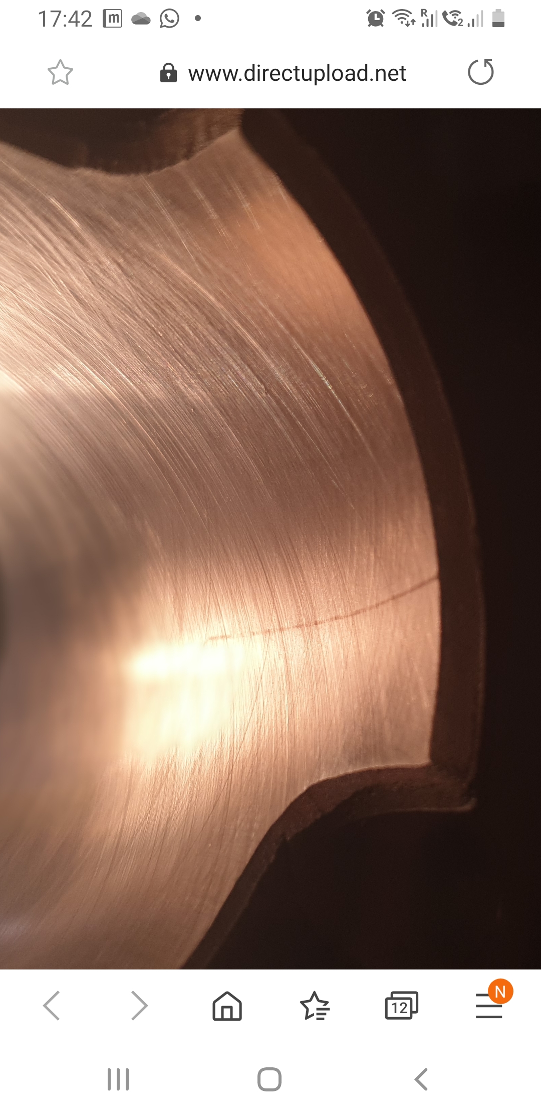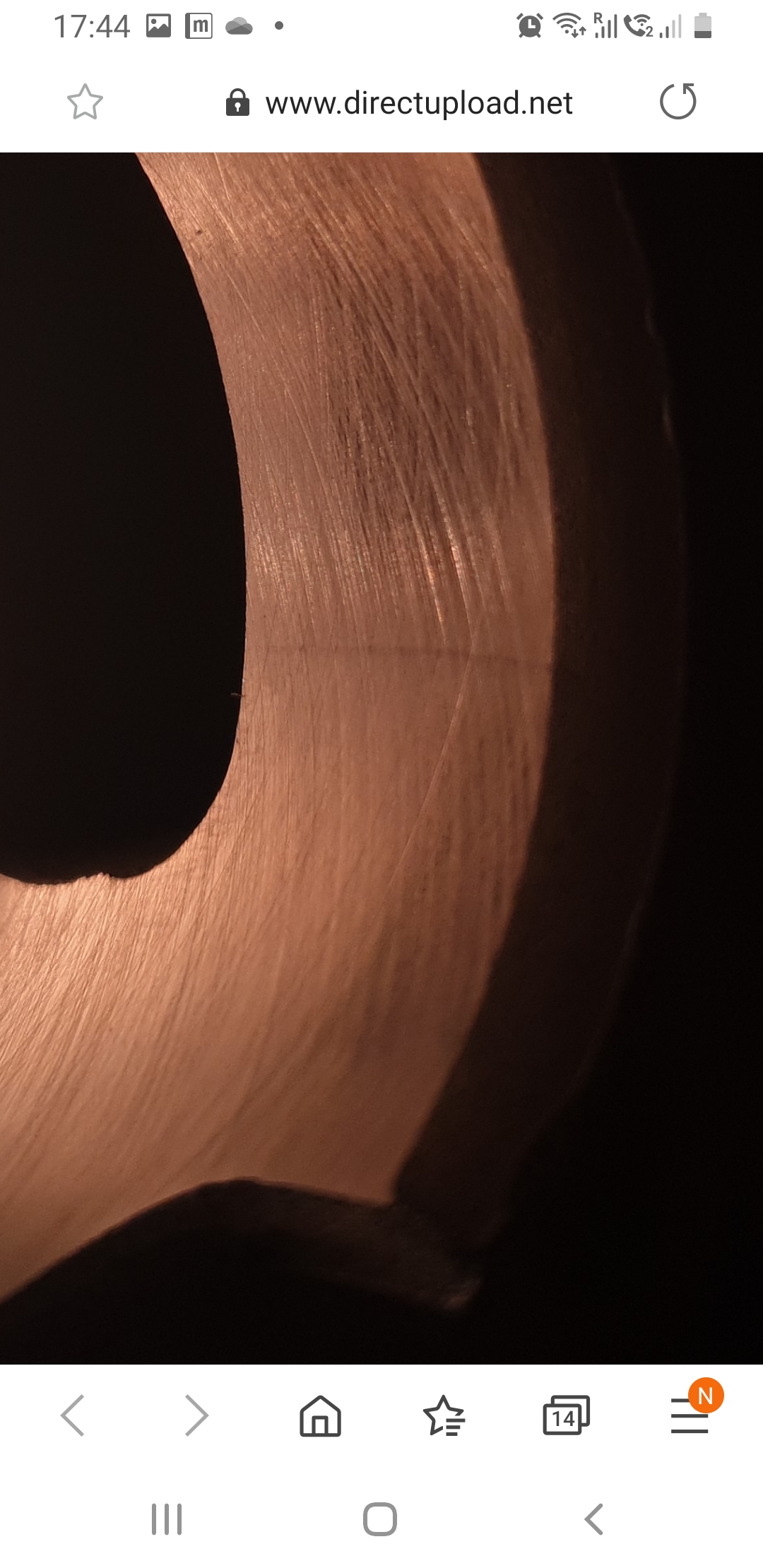 leider sind mir direkt 2 kratzer in der Laufbahn aufgefallen, den anderen bekomme ich leider kaum eingefangen, der befindet sich allerdings um ca. 70-75° versetzt (1. mitte überströmer, 2 fast mitte auslass)
