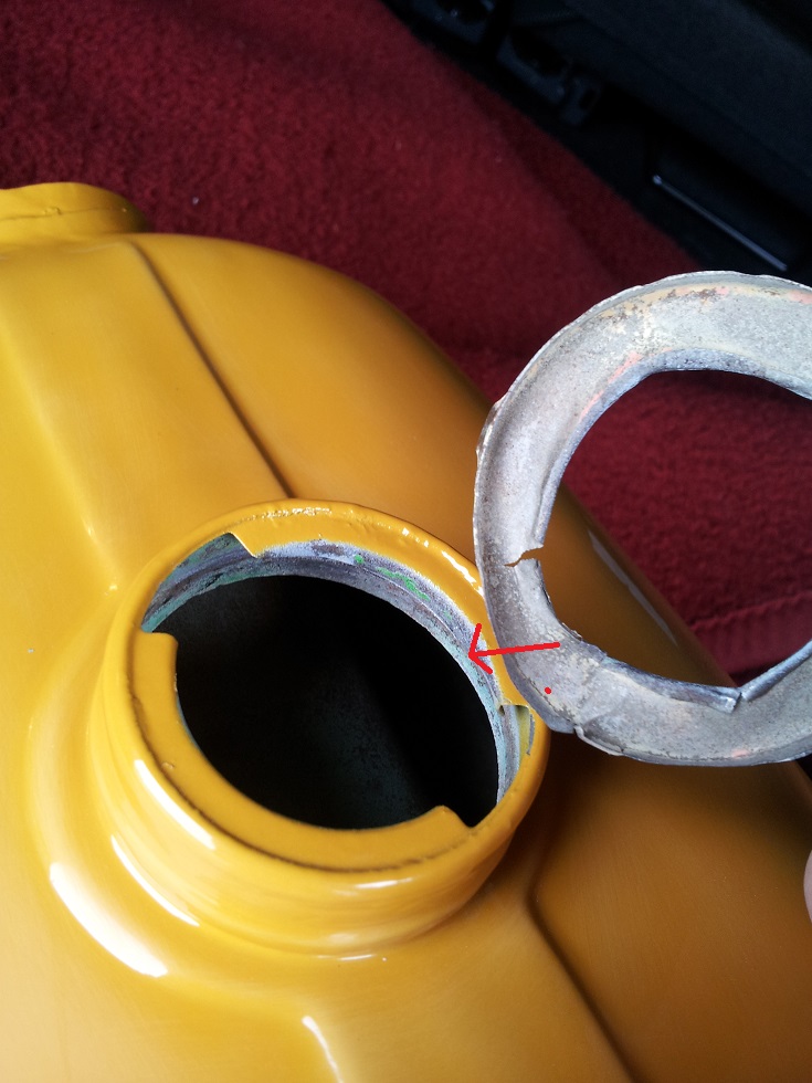 Na weil dieser Eisenring ab ist wie auf dem Foto zu sehen der in dem Einfüllstutzen sein müsste