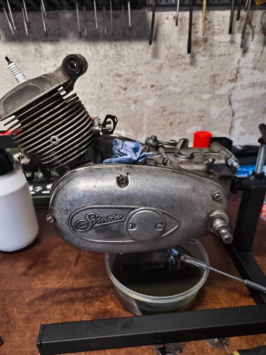 Das ist der Motor aus der Schwalbe meinens Vater. Die Schwalbe ist eine Kr51/1 von 1968.