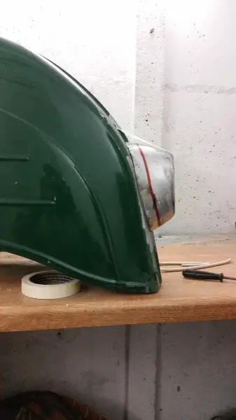 Die Idee mit dem Rücklicht kam auch von der Sourkrauts Schwalbe.Nur hatte mir die nach unten zeigende Anordnung nicht gefallen.Wo ich dann mit dem Anbau begonnen hatte,wußte ich warum.Es war die einfachste Variante.Es passt nämlich nicht ,ohne größere Umbauten.