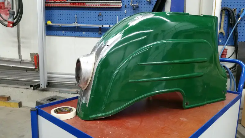 Das Lenkeremblem ist nur mit weißer Farbe aufgefüllt und dann wieder geschliffen worden.Der Gepäckträger ist nicht Verbogen sondern Gebogen.Er soll die Rundung des Panzers übernehmen und das nach hinten spitzer zulaufende Heck.