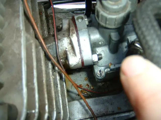 Dabei ist mir aufgefallen, dass das unter dem Vergaser sehr viel Benzingemisch angesammelt war.