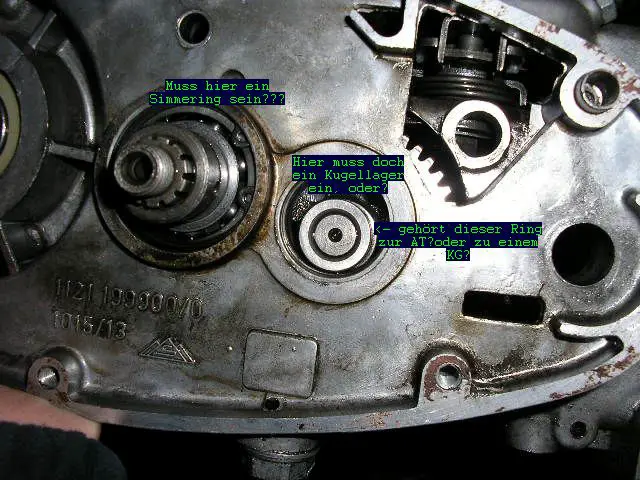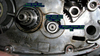 die antriebswelle ( wenn ich mich nicht täusche ist es die, die auch da kleine Kettenritzel antreibt) \"schwebte \" aber auf der Kupplungseite.