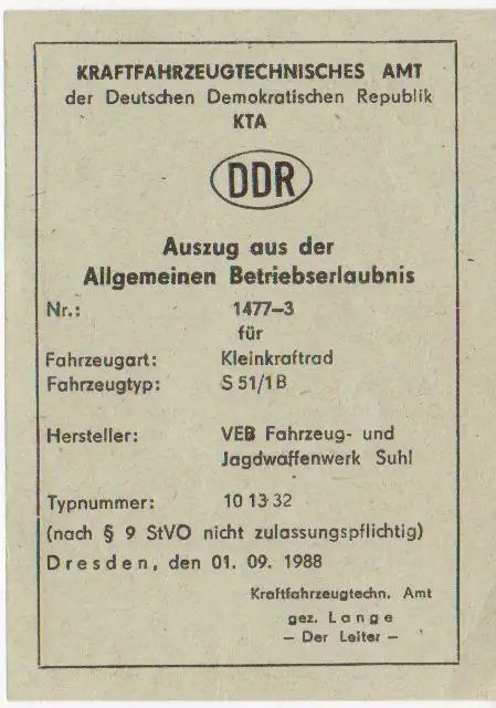 Nach dem Datum nicht orischinol, denn da war das Gebiet der DDR schon mit der Bundesrepublik wiedervereinigt und dementsprechend darf das Möp dann keine 60 km/h fahren...