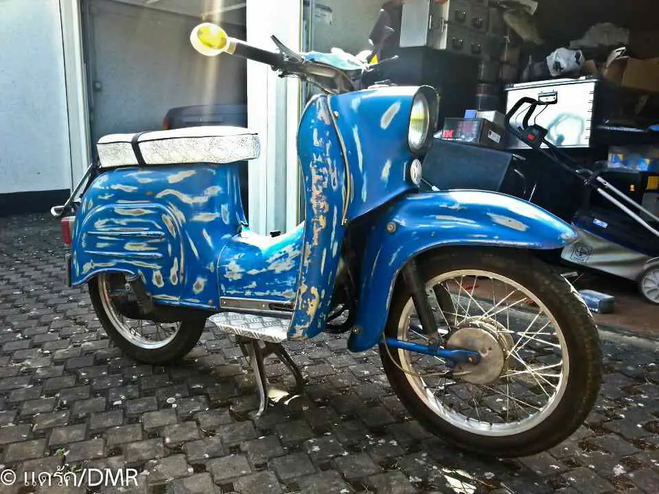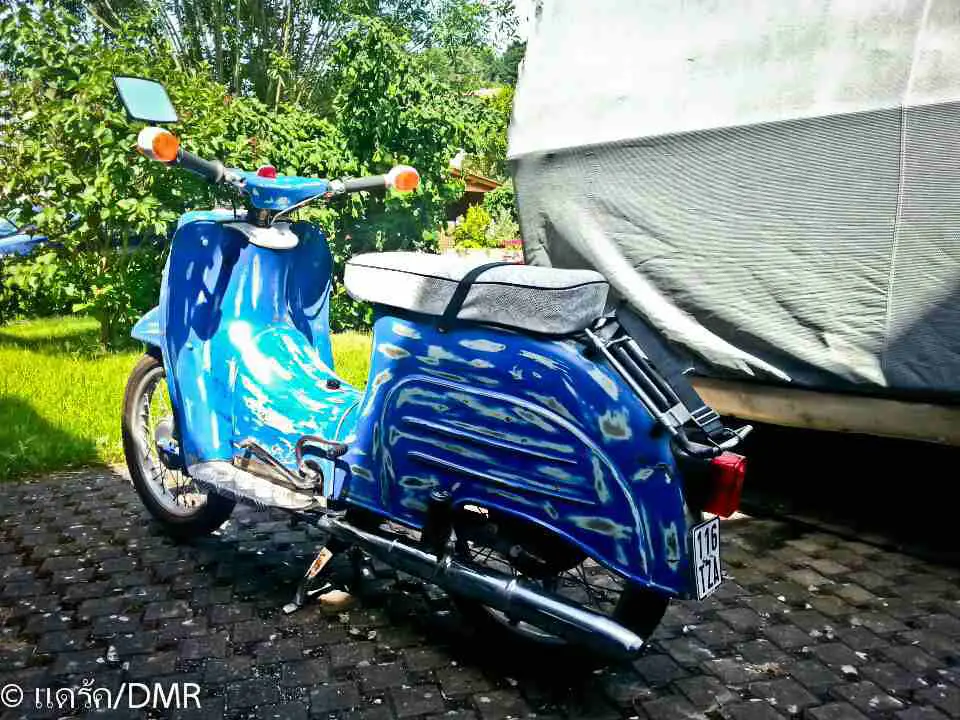 Technisch noch nicht voll auf der Höhe - Blinker und Hupe gehen nicht (Sicherung ist OK), 1. Gang springt oft raus, nach warm und schnell fahren geht das Stottern bis zum Ausgehen im Ortsverkehr, Ölt etwas - aber zumindest auf Kurzstrecke ist sie schon gut fahrbar..