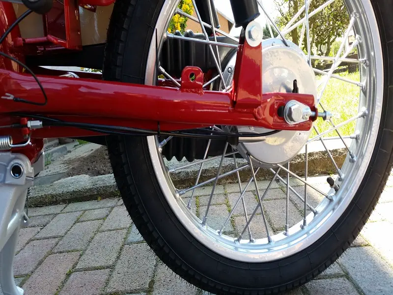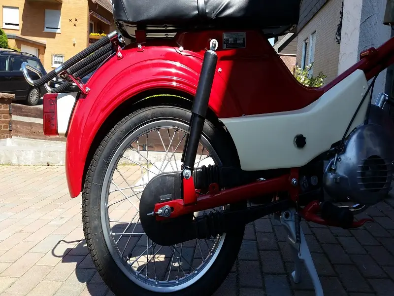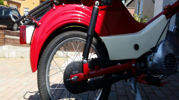 1. Ist das Hinterrad "länger" als der Ständer. Man kann trotz Ständer noch leicht hin und herrollen.