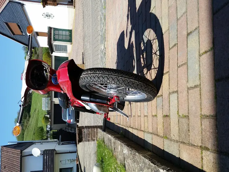 .Dass sie nicht steht ist nicht das schlimmste. Schlimmer ist der Auspuff.