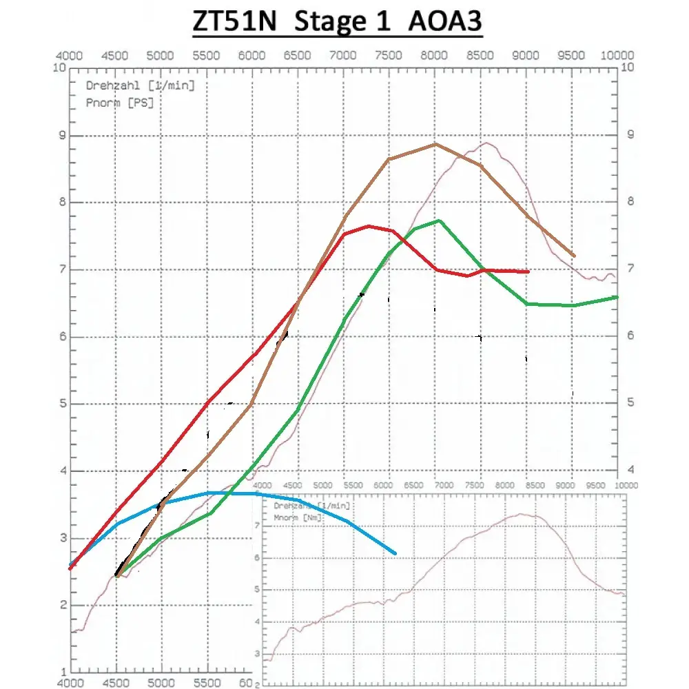 Schnitzer hat ~6PS, wenn man den ZT51N mit einem AOA1 oder Stino Auspuff, Stino Lufi und 16er Vergaser eindrossselt, dann sollte die Fahrbarkeit nochmal gesteigert werden und die Leistung wird sich in einem eintragungs fähigen Bereich bewegen.