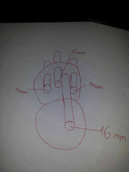 Also von 16mm auf 2*14mm und ein mal 15mm.